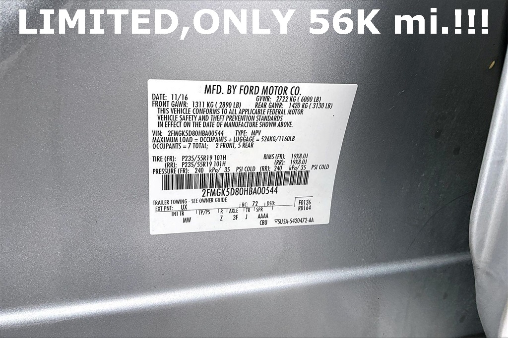 VIN: 2FMGK5D80HBA00544 | Stock #: A00544P | Mileage: 56,799