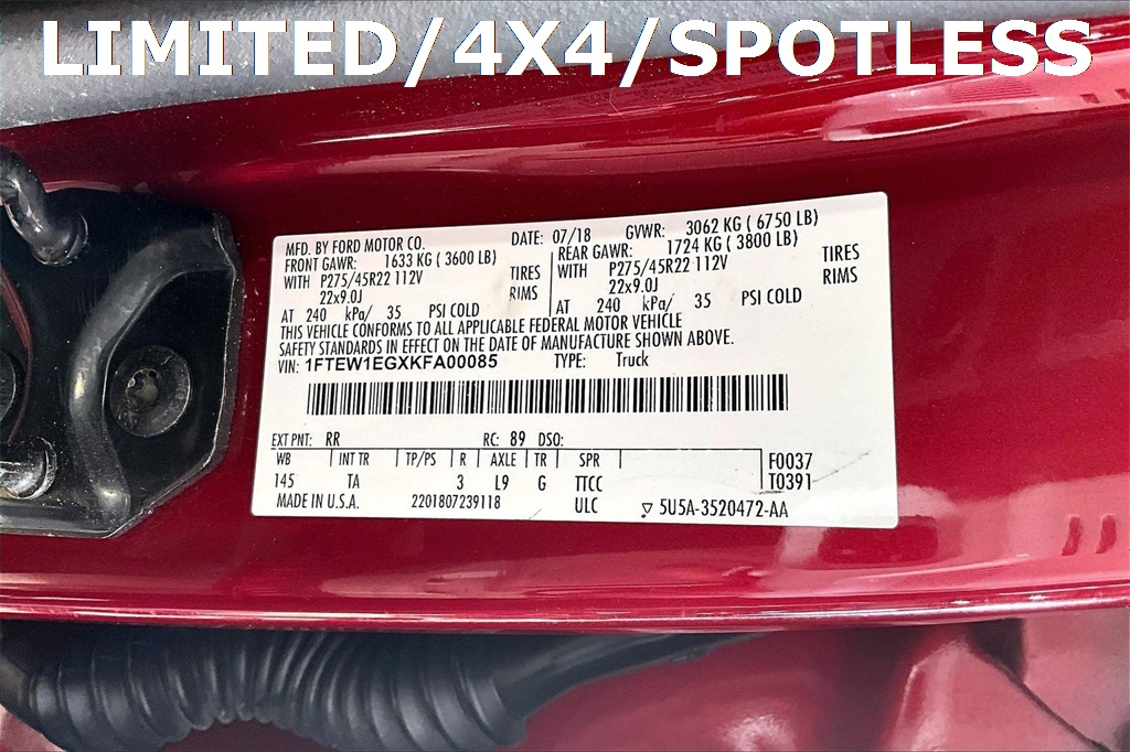 Ruby Red Metallic 2019 Ford F-150 Limited 4D SuperCrew 4WD 3.5L V6 EcoBoost 10-Speed Automatic