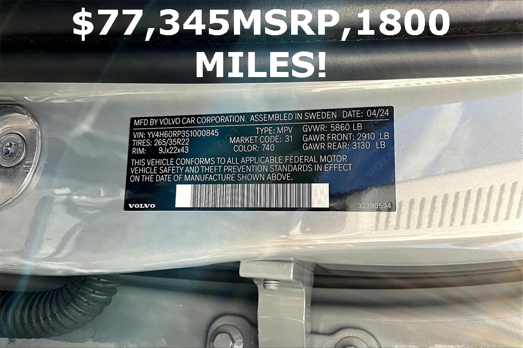 VIN: YV4H60RP3S1000845 | Stock #: 000845P | Mileage: 1,874
