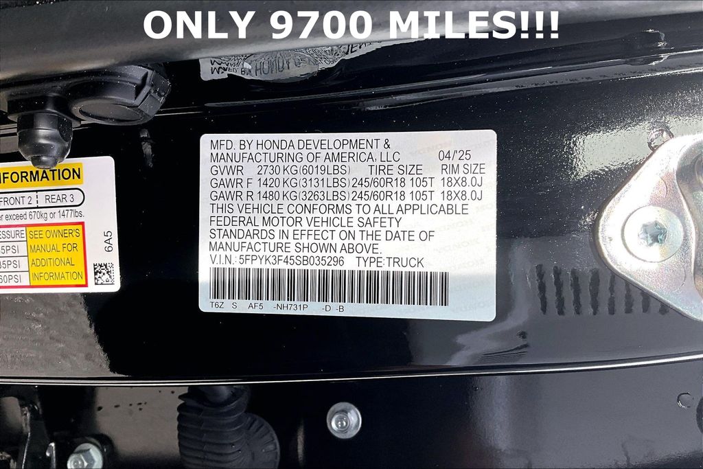 VIN: 5FPYK3F45SB035296 | Stock #: 035296A | Mileage: 9,704